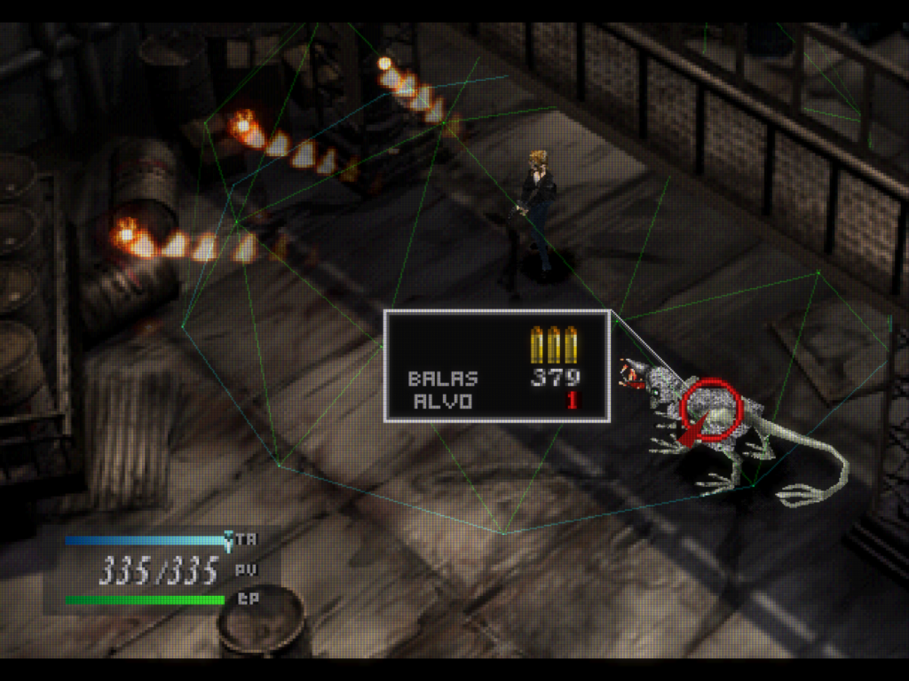 ❌ O Drama da Câmera: Às vezes, você vai levar um golpe porque a câmera mudou o ângulo e você começou a correr para a direção errada. Clássico do Survival Horror do PS1.